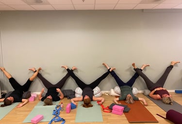 Bruk av hjelpemidler (klosser, belter, bolster og stoler) for å få fult utbytte av stillingen