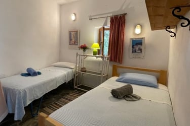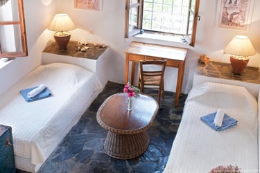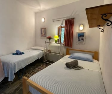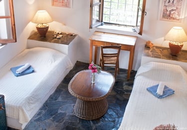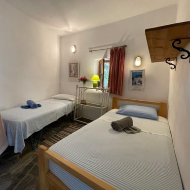 Trivelig rom med to enkeltsenger og delt bad, for deg som ønsker en enkel og rimelig løsning.